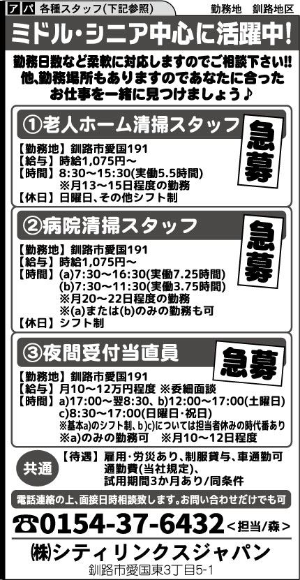 ※お電話の際は「きゅうじんくんを見た」とお伝え頂けるとスムーズです。