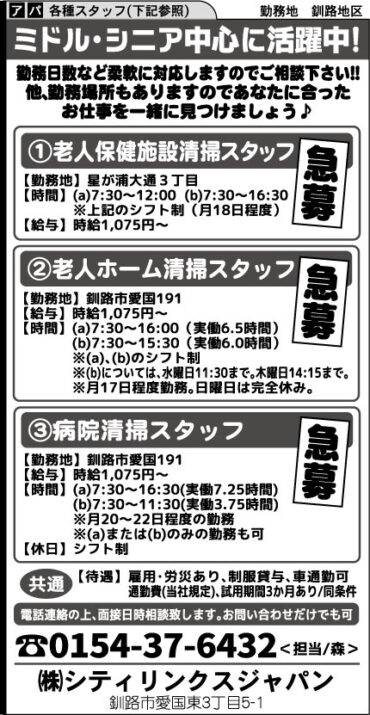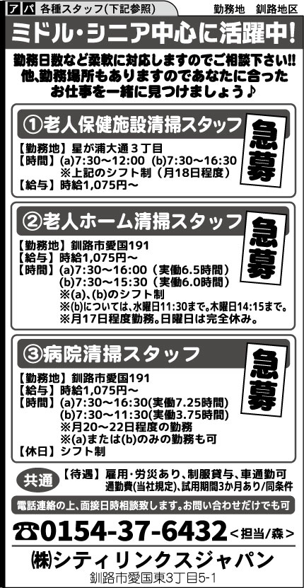 ①《人気求人》《増員急募!》レンタル用品の美化作業 ②《NEW》客室清掃 ③《NEW》客室清掃 ④調理補助・洗浄スタッフ