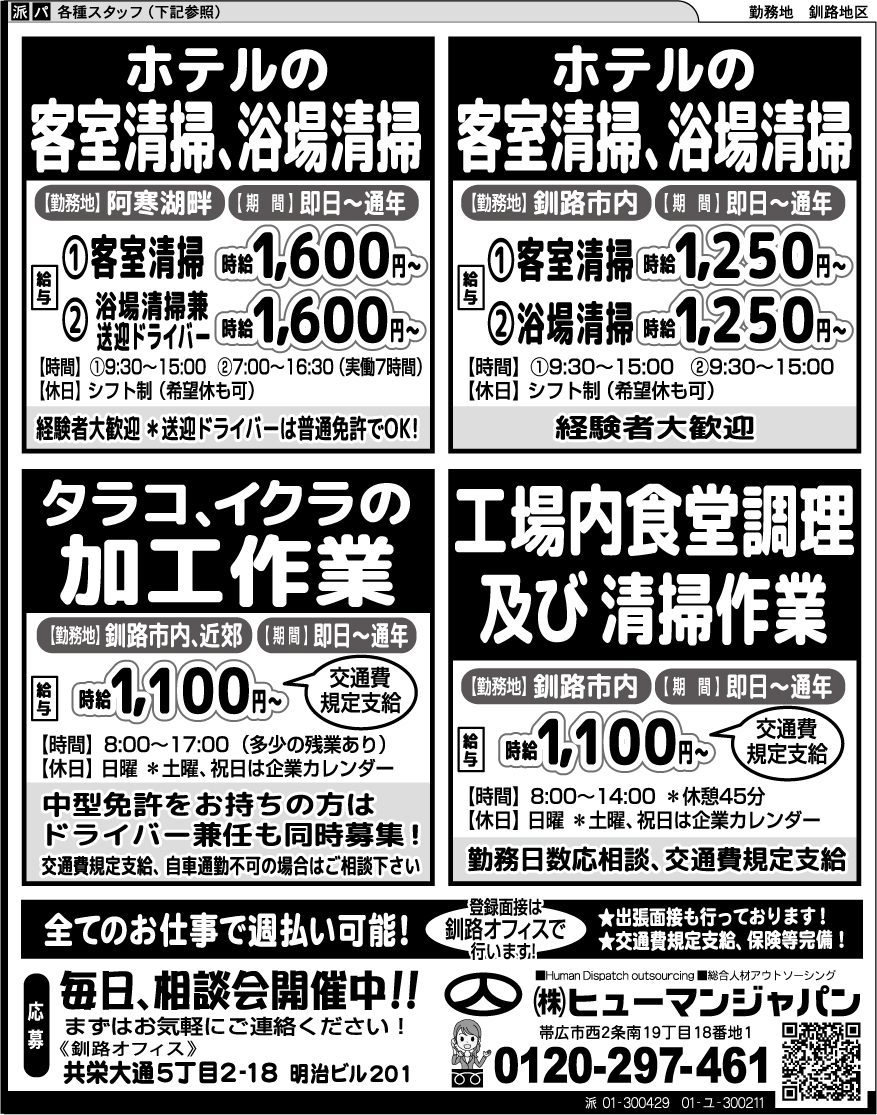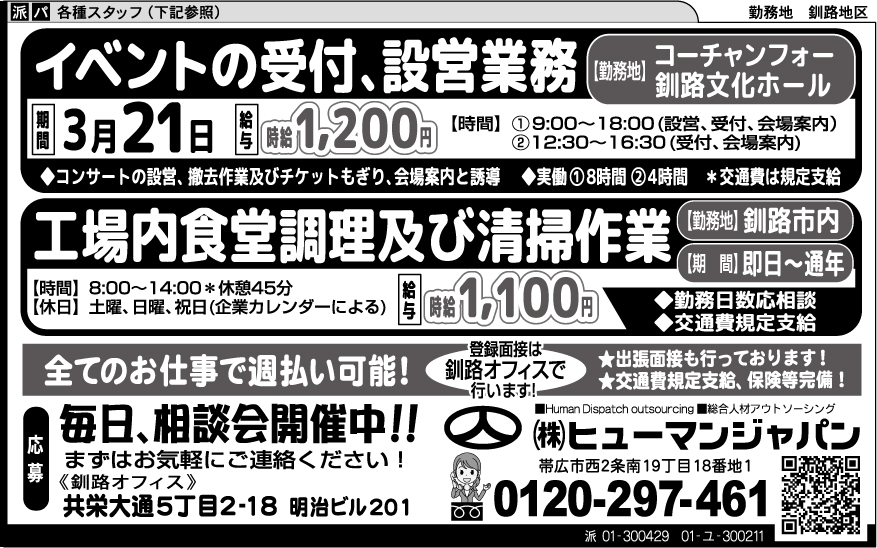 総合人材アウトソーシング(派01-300429、01-ユ-300211)