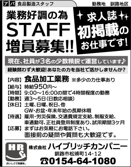 求人誌初掲載のお仕事です!