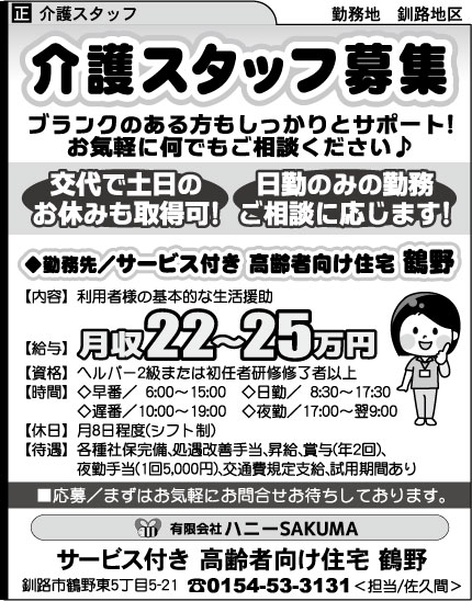 ②●8:00~16:30(休60分)(浜中)※早く勤務が終了しても1日7.5時間補償