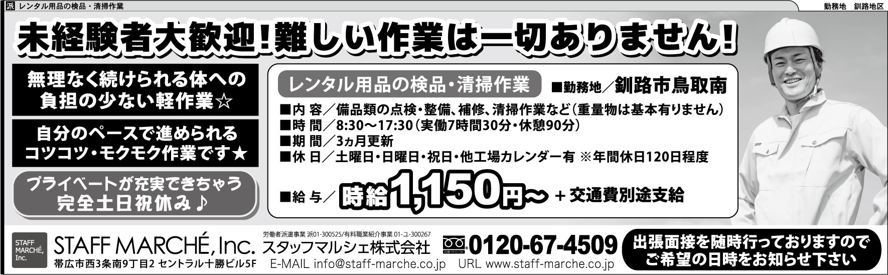 ①《人気求人》《増員急募!》レンタル用品の美化作業 ②《NEW》客室清掃 ③《NEW》送迎兼任Dr ④《NEW》客室清掃