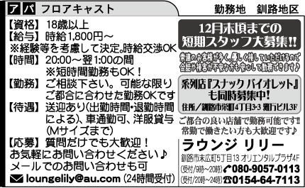 TOP  > 勤務地【釧路市・釧路町】  > ラウンジ リリー