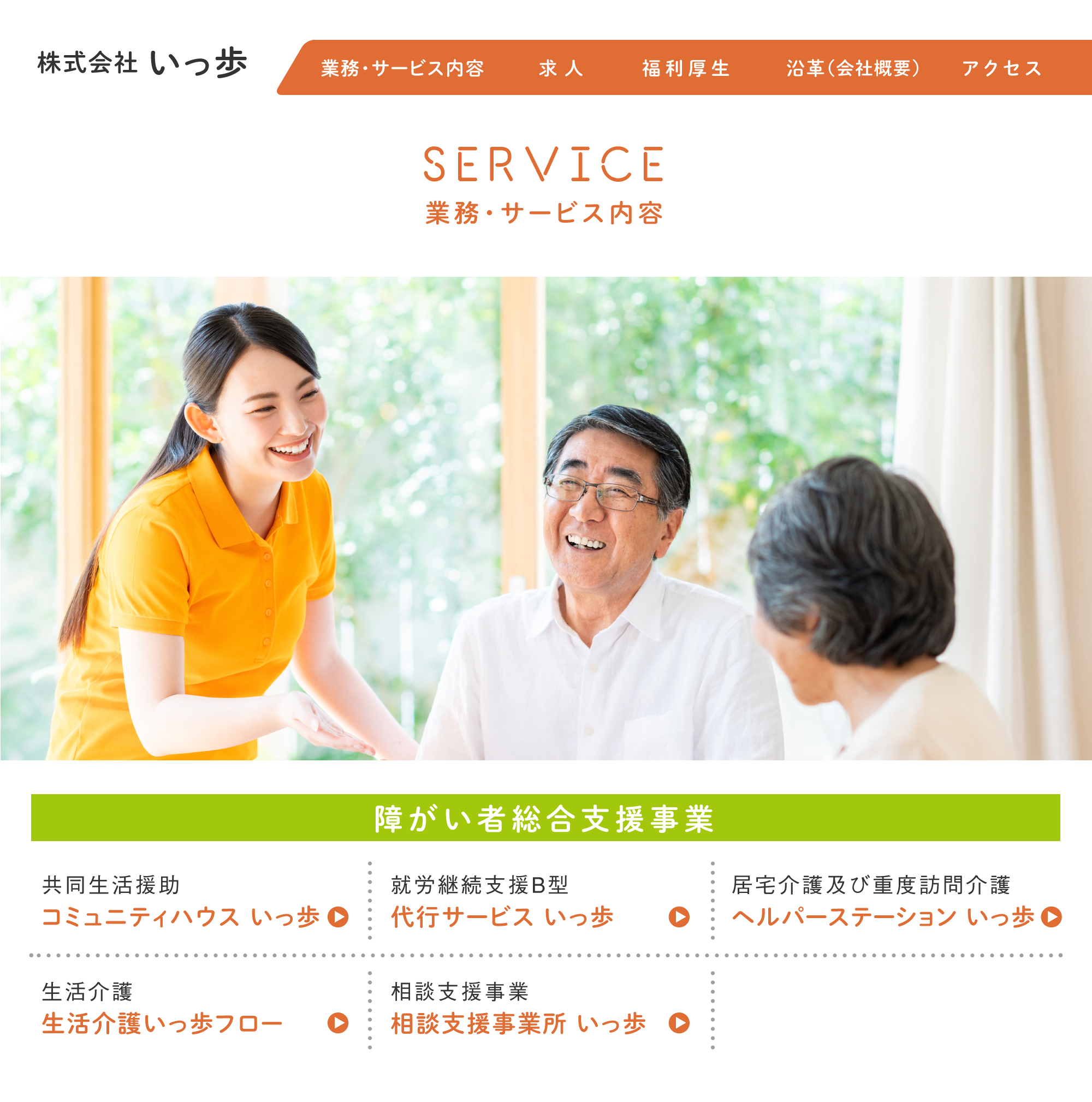 ◎共同生活援助 (13ヶ所) ◎生活介護 (3ヶ所) ◎訪問介護 ◎居宅介護 ◎介護付有料老人ホーム ◎就労継続支援B型事業所 ◎相談支援事業所