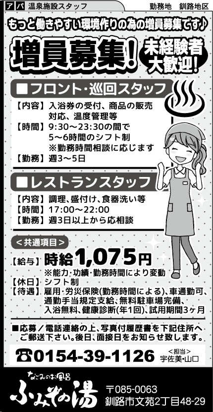 ⑦9:00~12:00 ※それ以降の就業希望も相談可