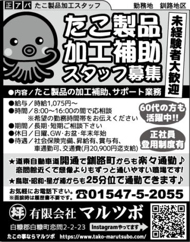TOP  > 勤務地【釧路市・釧路町】  > 有限会社 マルツボ