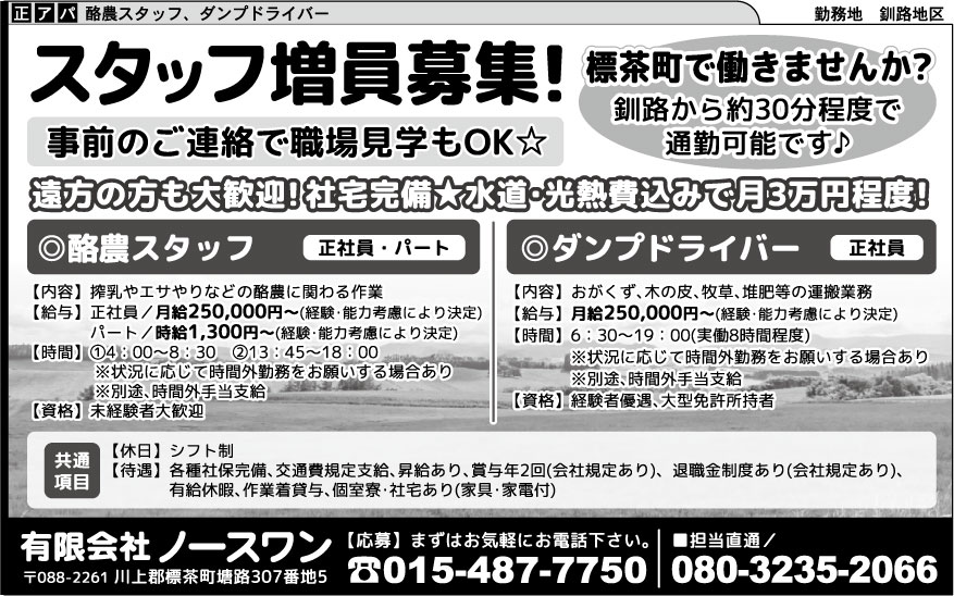 標茶町で働きませんか?