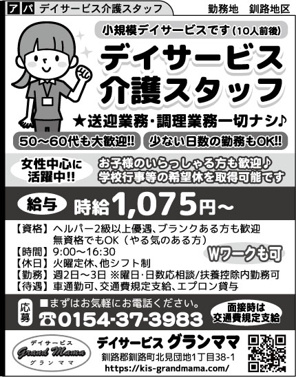 TOP  > 勤務地【釧路市・釧路町】  > デイサービス グランママ