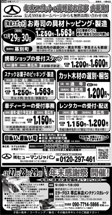 年末スポット&高時給お仕事 大募集!