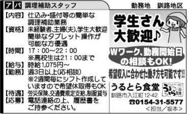 TOP  > 勤務地【釧路市・釧路町】  > うるとら食堂