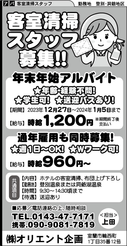 ■年末年始アルバイト/2023年12月27日~2024年1月5日まで