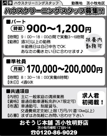 TOP > おそうじ本舗 苫小牧明野店(掲載終了)