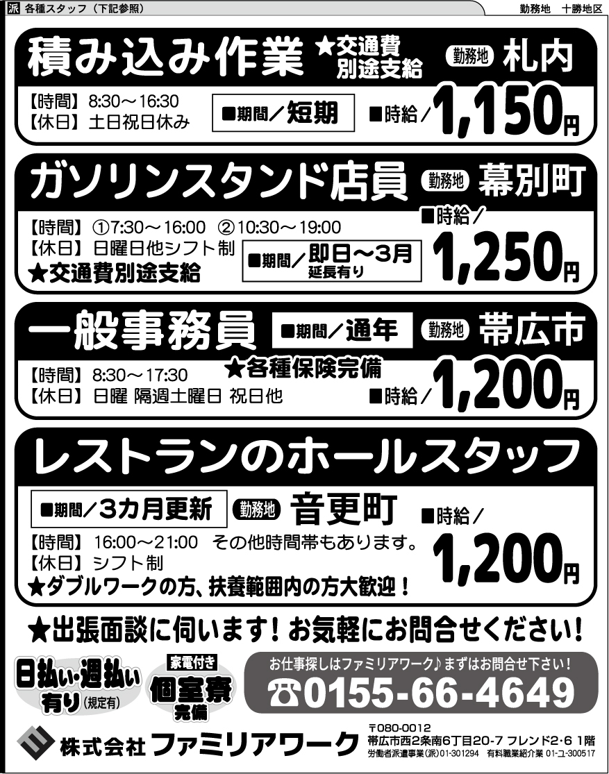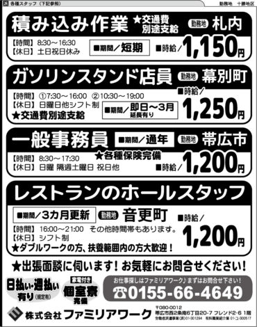 お仕事探しはファミリアワーク♪まずはお問合せ下さい!