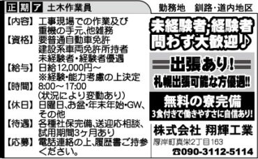 8:00~17:00(休憩60分)※現場により若干変動あり