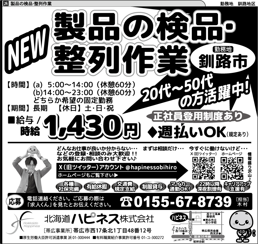 ・X(旧ツイッター)アカウント @hapinessobihiro