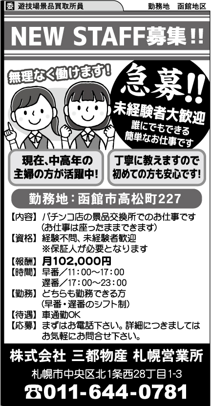 TOP > 株式会社 三都物産 札幌営業所(掲載終了)