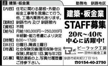 住宅に関わる屋根・外壁の板金工事等を現場にて行う。