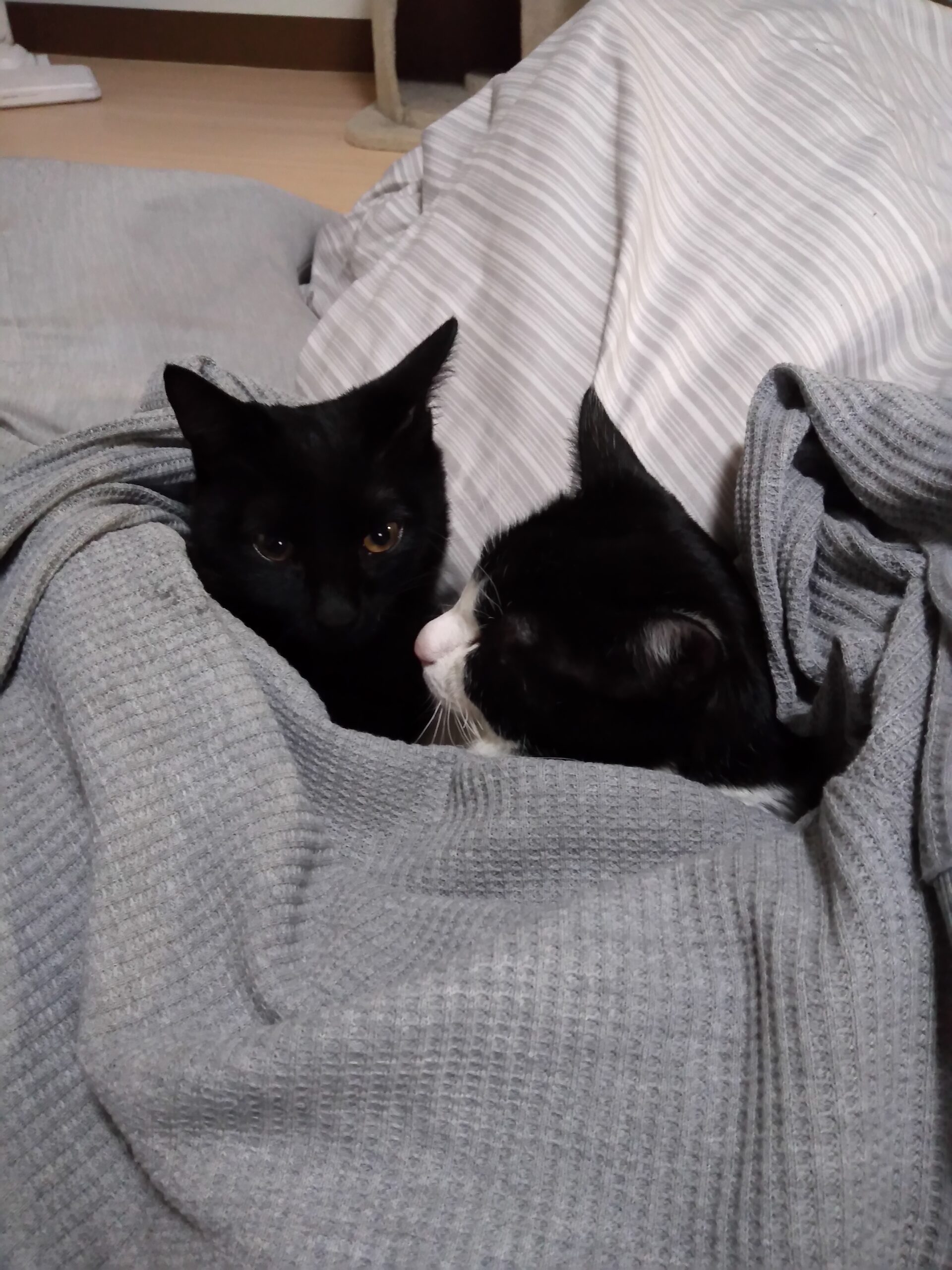 釧路市≫チビ(白黒・3歳)&クロミ(黒・4ヵ月)